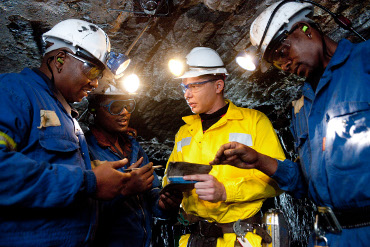 Anglo Thermal Coal – Close-up of Kevin Steyn at work with some underground miners at the New Denmark Colliery