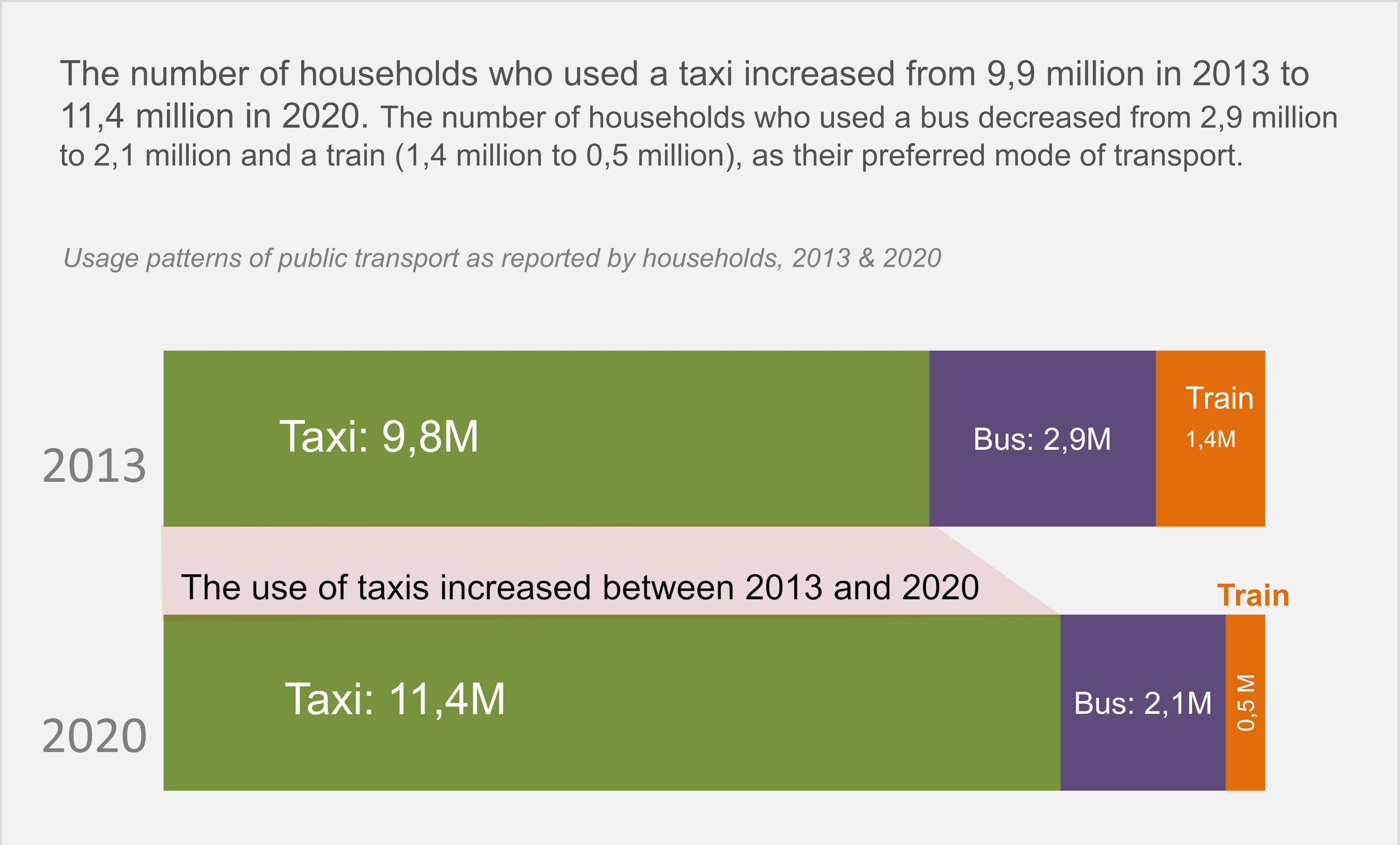 42% of households use taxis as the main mode of transport (NHTS 2013)