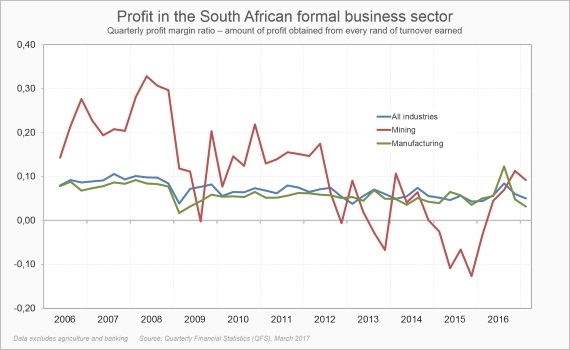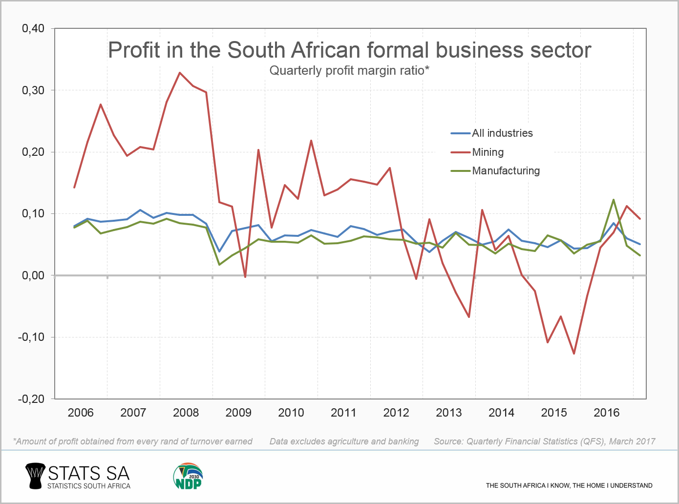1 Quarterly financial statistics (QFS), March 2017 (download here). In the QFS, the formal business sector includes private businesses and public corporations, but excludes agriculture, financial intermediation, insurance and government institutions.