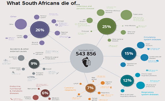 Statistics South Africa (Stats SA) has released a report dealing with Mortality and Causes of Death in South Africa. The release is based on data obtained from deaths that occurred in 2010 and were registered at the Department of Home Affairs.