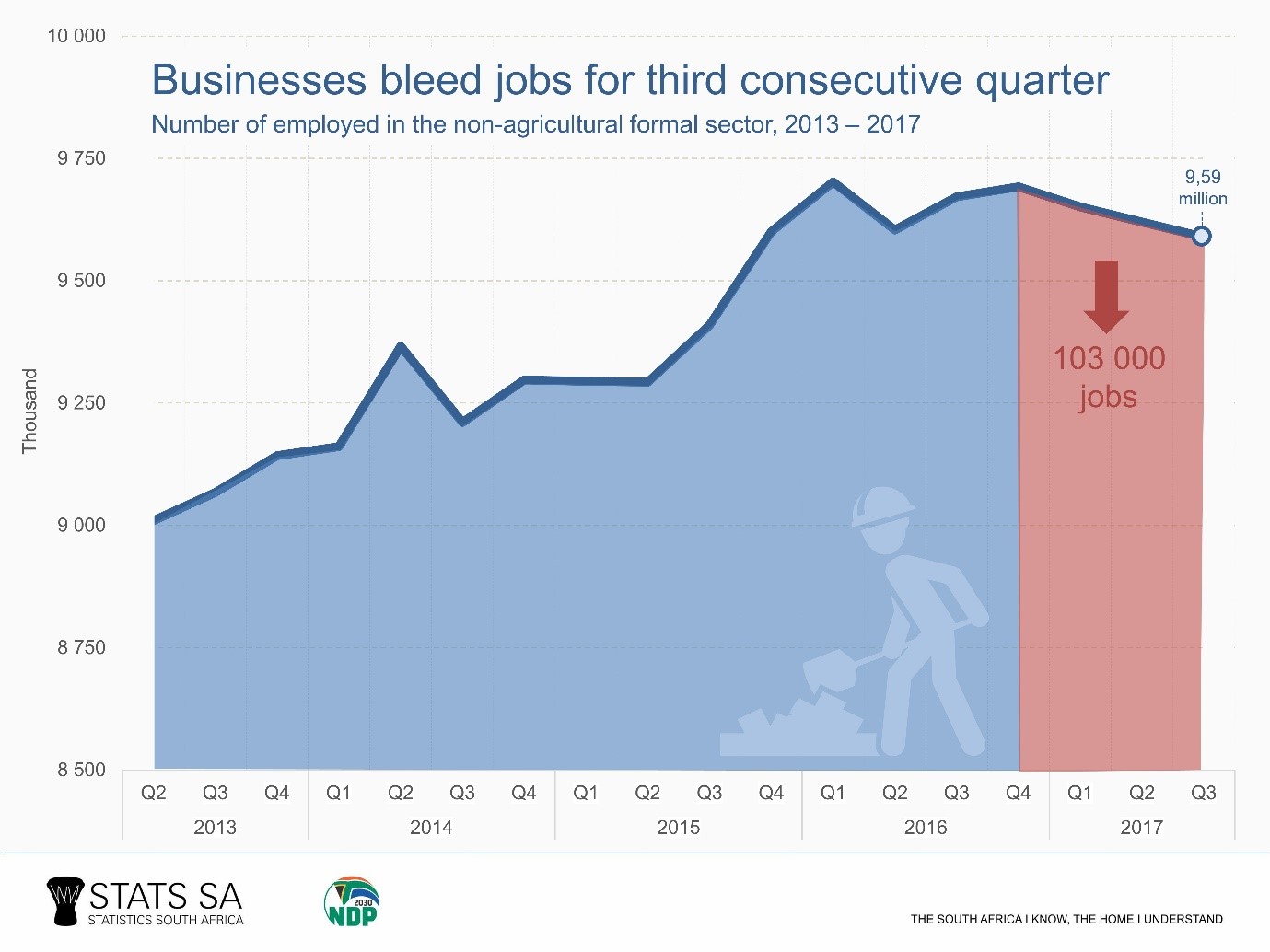 The job market has experienced notable pressure in the last year, with 83 000 formal jobs lost from September 2016 to September 2017.