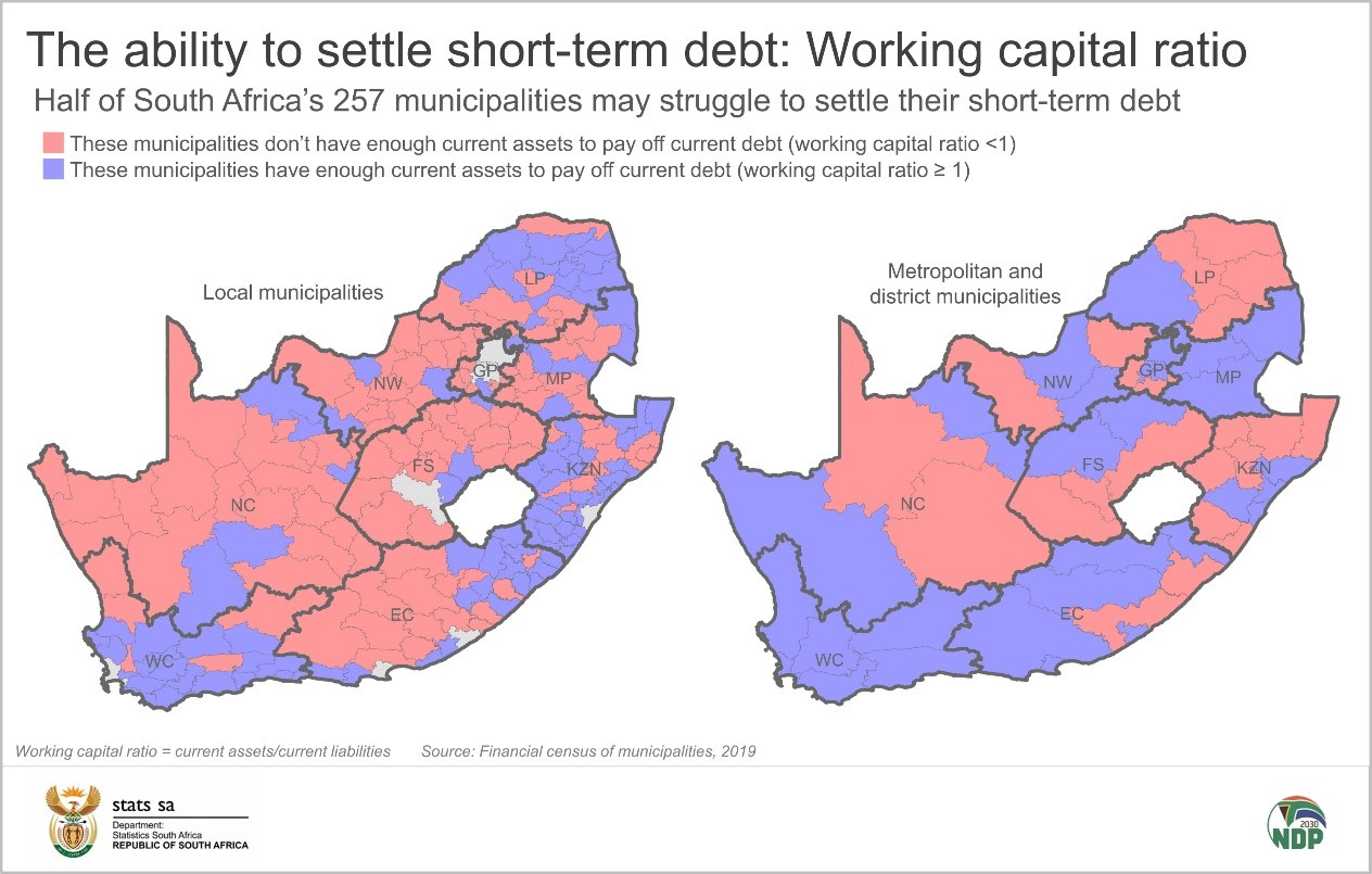 In 2019, half of all municipalities reported a working capital ratio of less than one. Free State, North West and Northern Cape had the highest proportions of municipalities falling into this category.