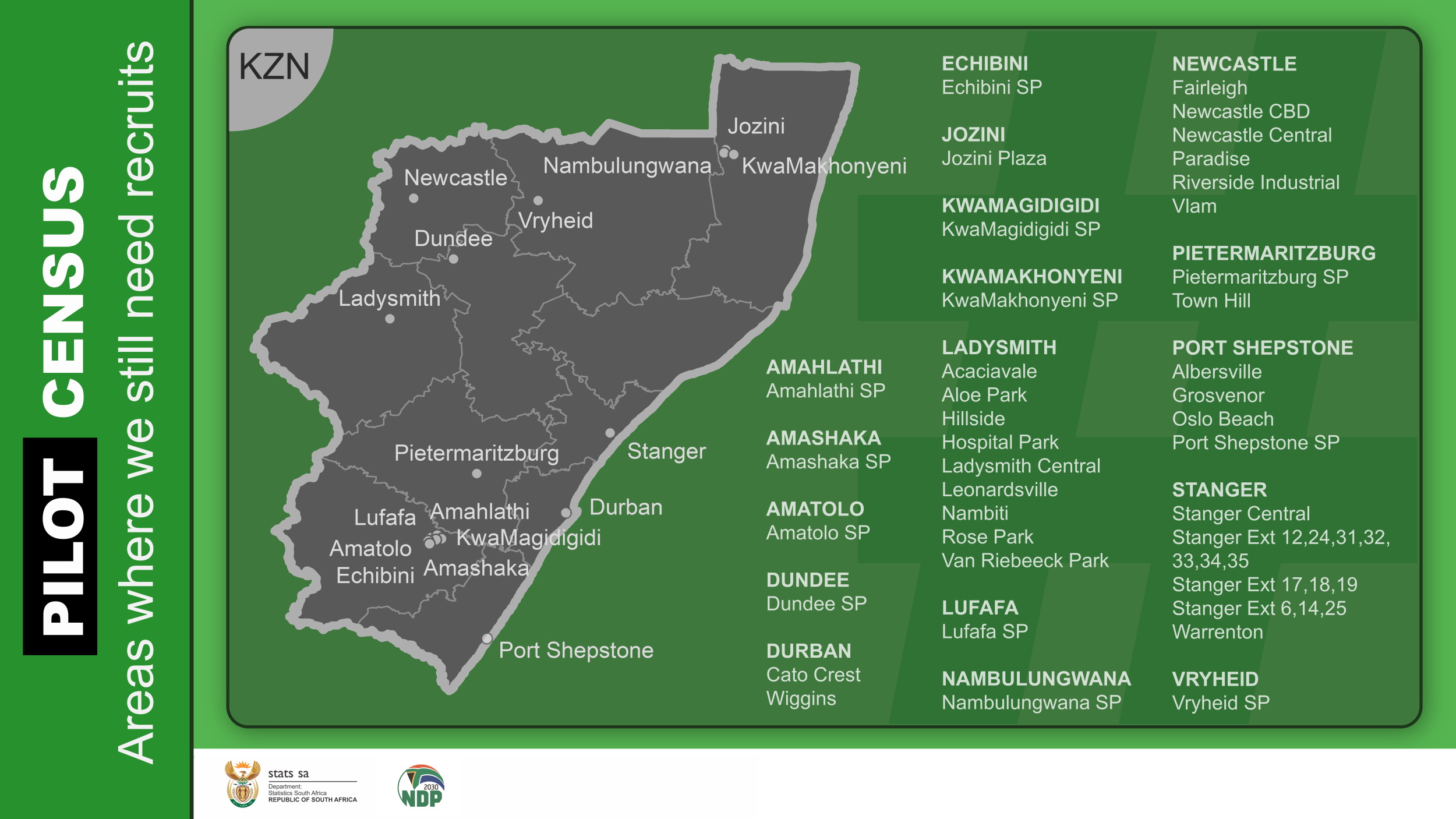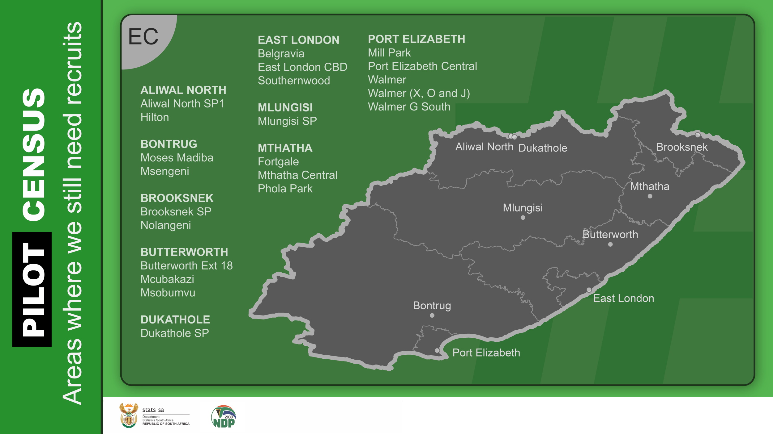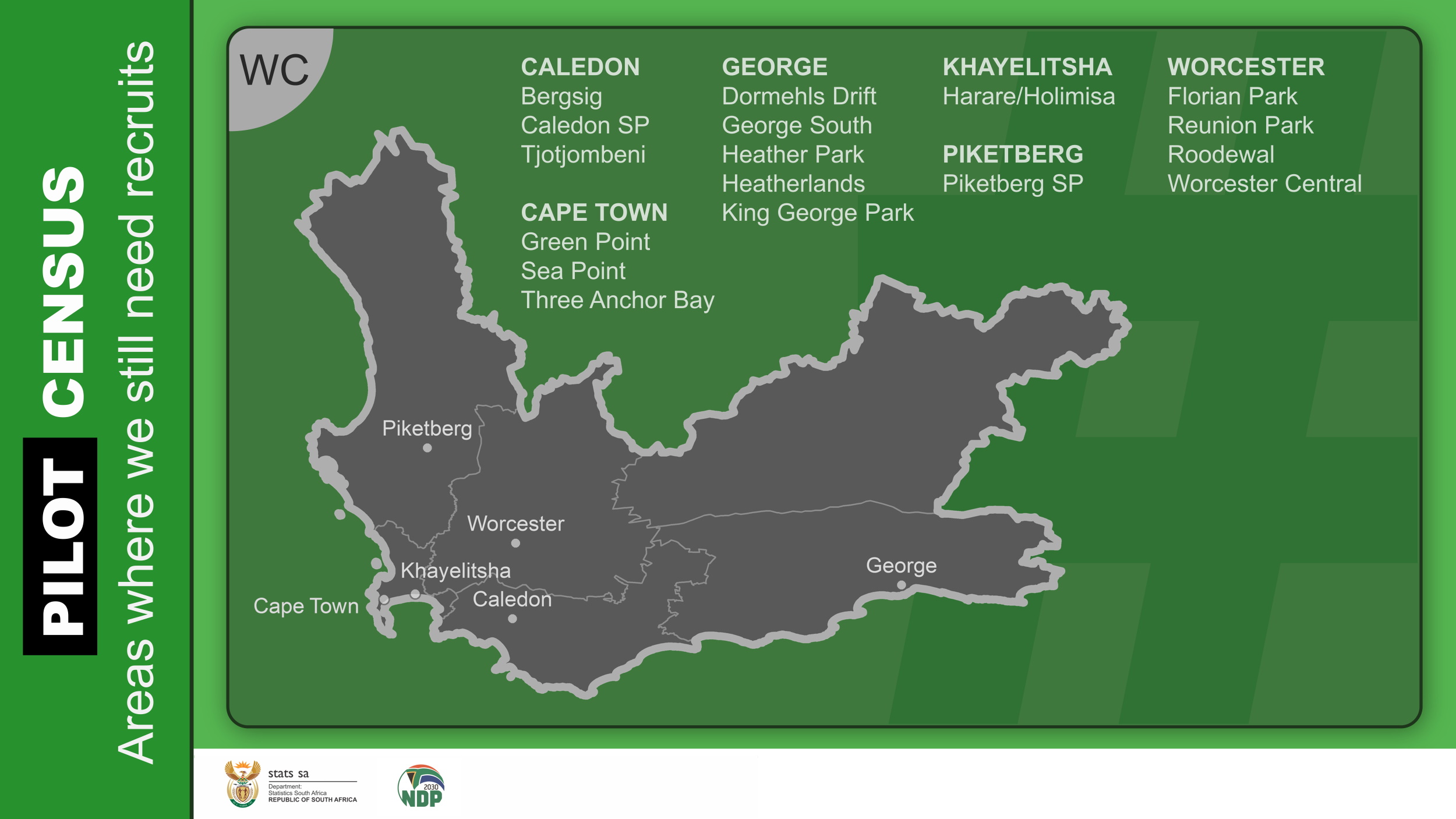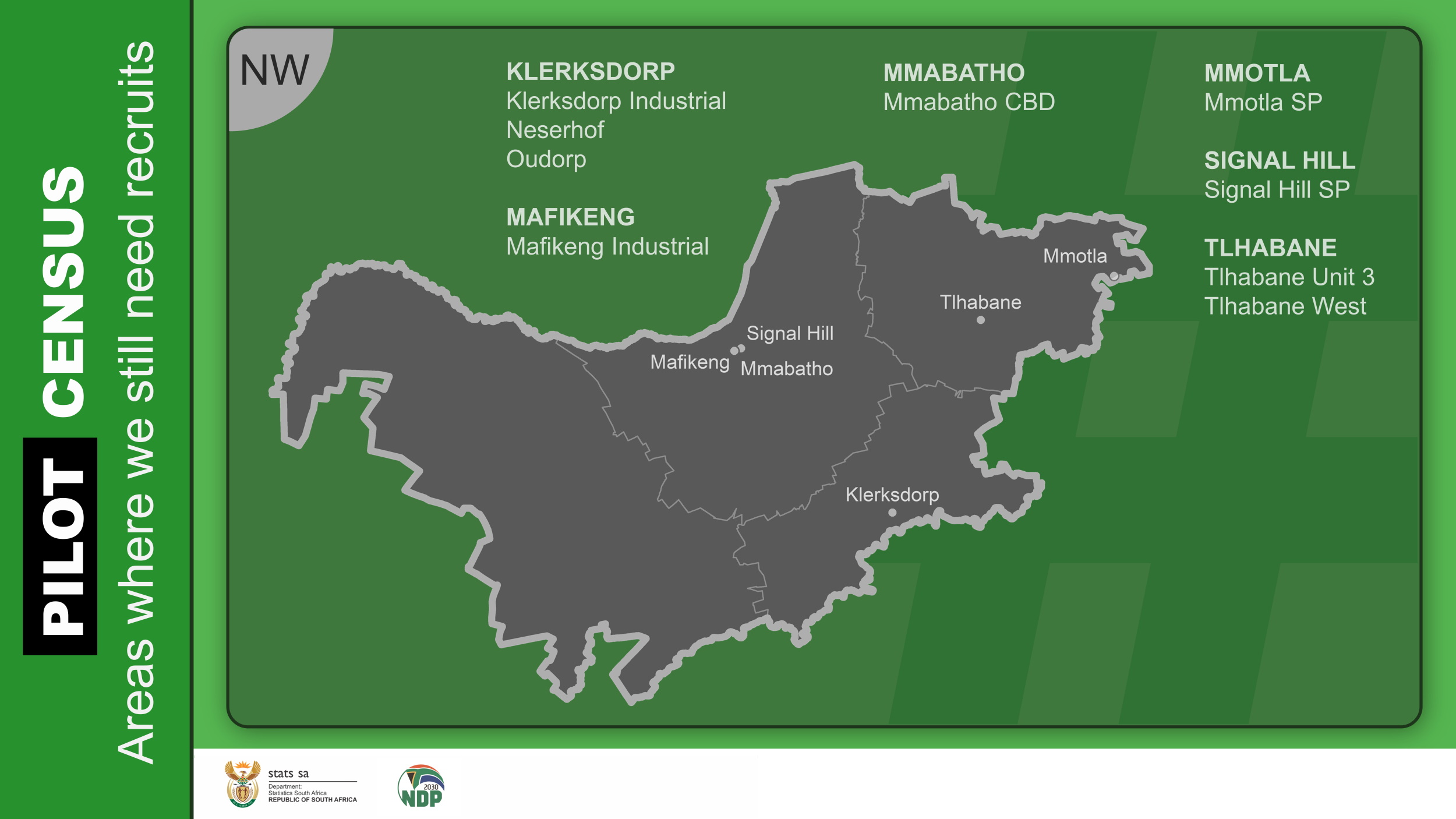 When the main census goes into field, we will need people from every corner of the country. While these specific areas are being targeted, we encourage all job-seekers with the relevant qualifications to register on Stats SA’s HR Database.