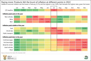 Consumer inflation hit its highest level in 13 years during 2022. The average inflation rate for the year (6,9%) hides the differences in timing and extent of price increases for different product groups.