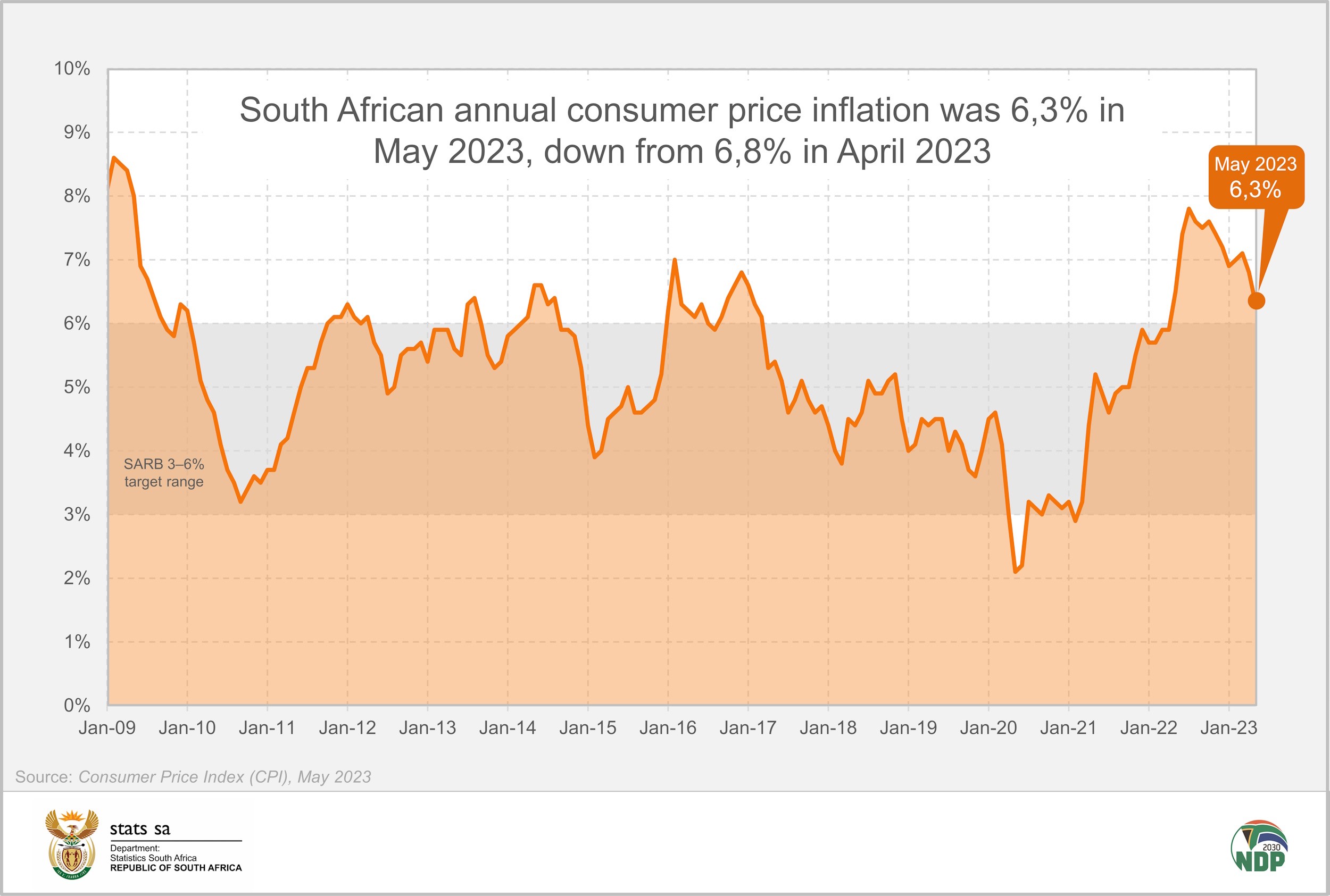 Headline consumer inflation cooled for a second consecutive month in May to 6,3% from 6,8% in April. May’s reading is the lowest since April 2022 when the rate was 5,9%.