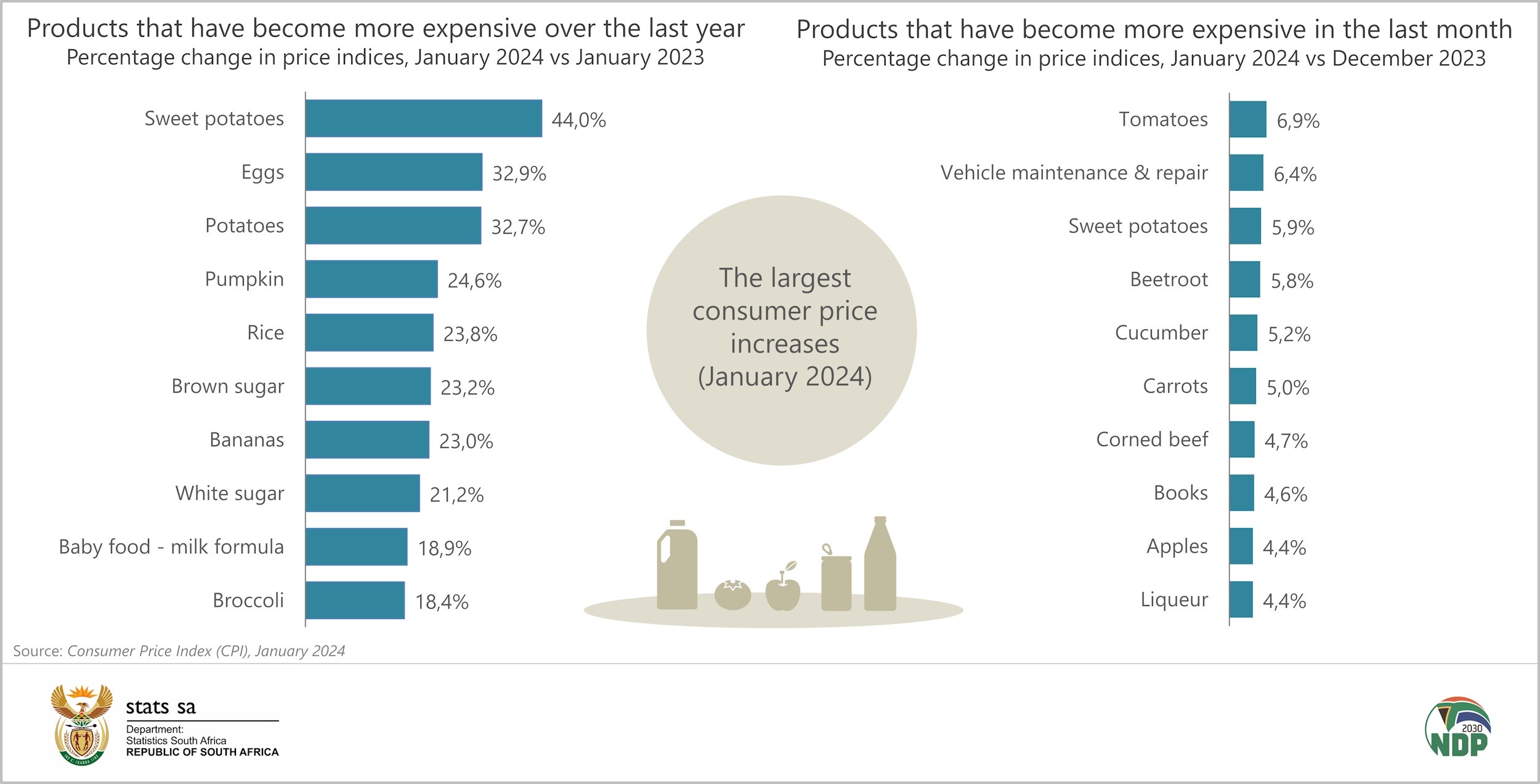The graphs below show the products that recorded the most significant annual and monthly price increases in January.