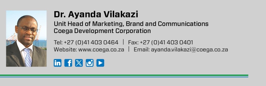 Facebook: CoegaDevCorp; X:@CoegaDevCorp; LinkedIn: Coega Development Corporation; Instagram: Coega Development Corporation; and YouTube: CoegaDevCorp