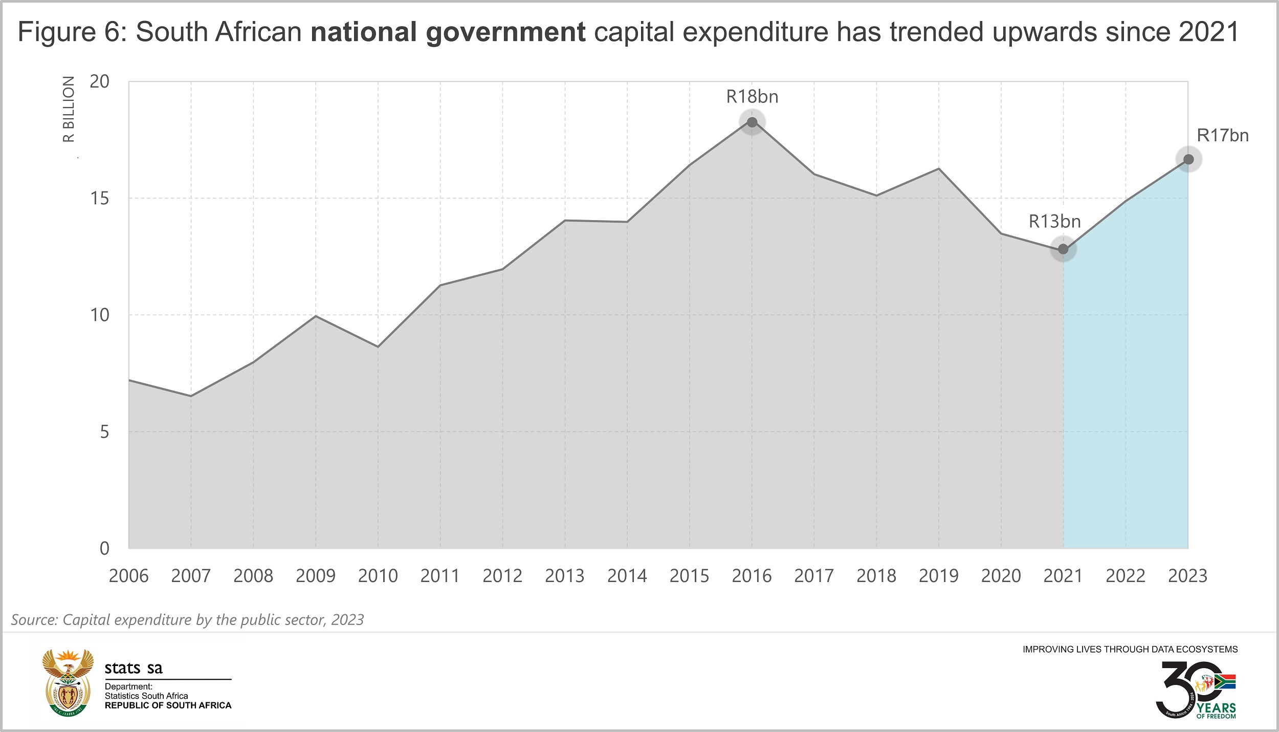 Infrastructure investment has a long-term impact on the economy, supporting travel, communication, logistics and service provision. The South African public-sector recorded a second consecutive year of capital expenditure growth, boosted mainly by increased spending by public corporations.