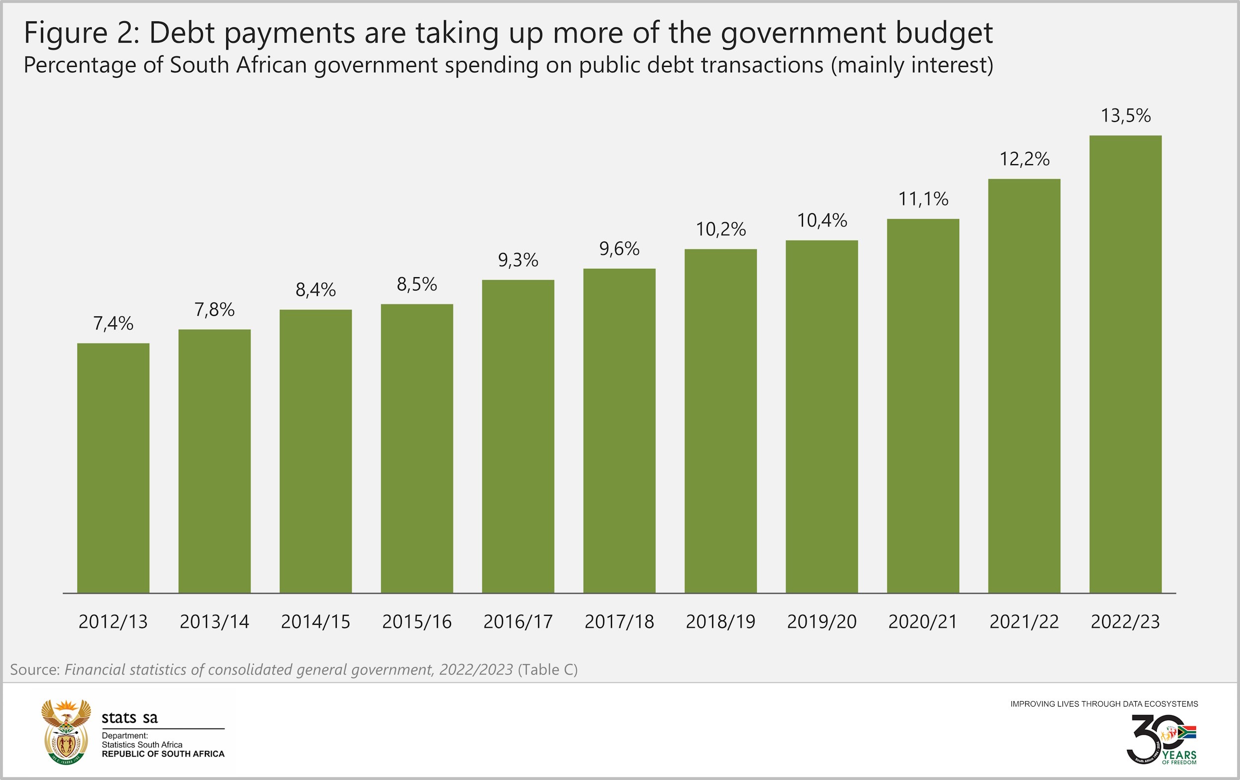 For more information, download the 2022/2023 Financial statistics of consolidated general government statistical release and time series data here.