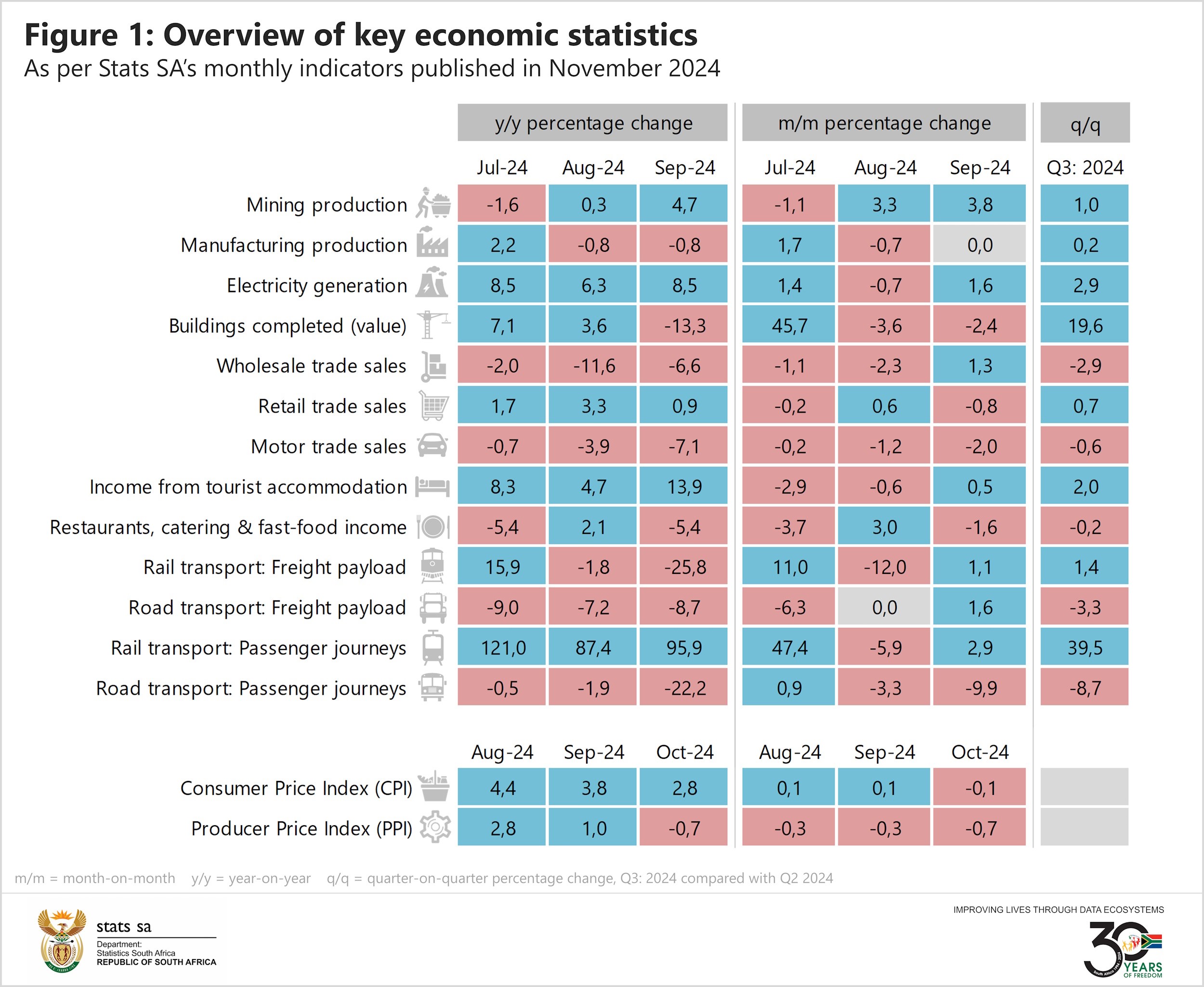 Stats SA published 22 releases in November, many of which provide a preliminary snapshot of economic performance in the third quarter (July–September).