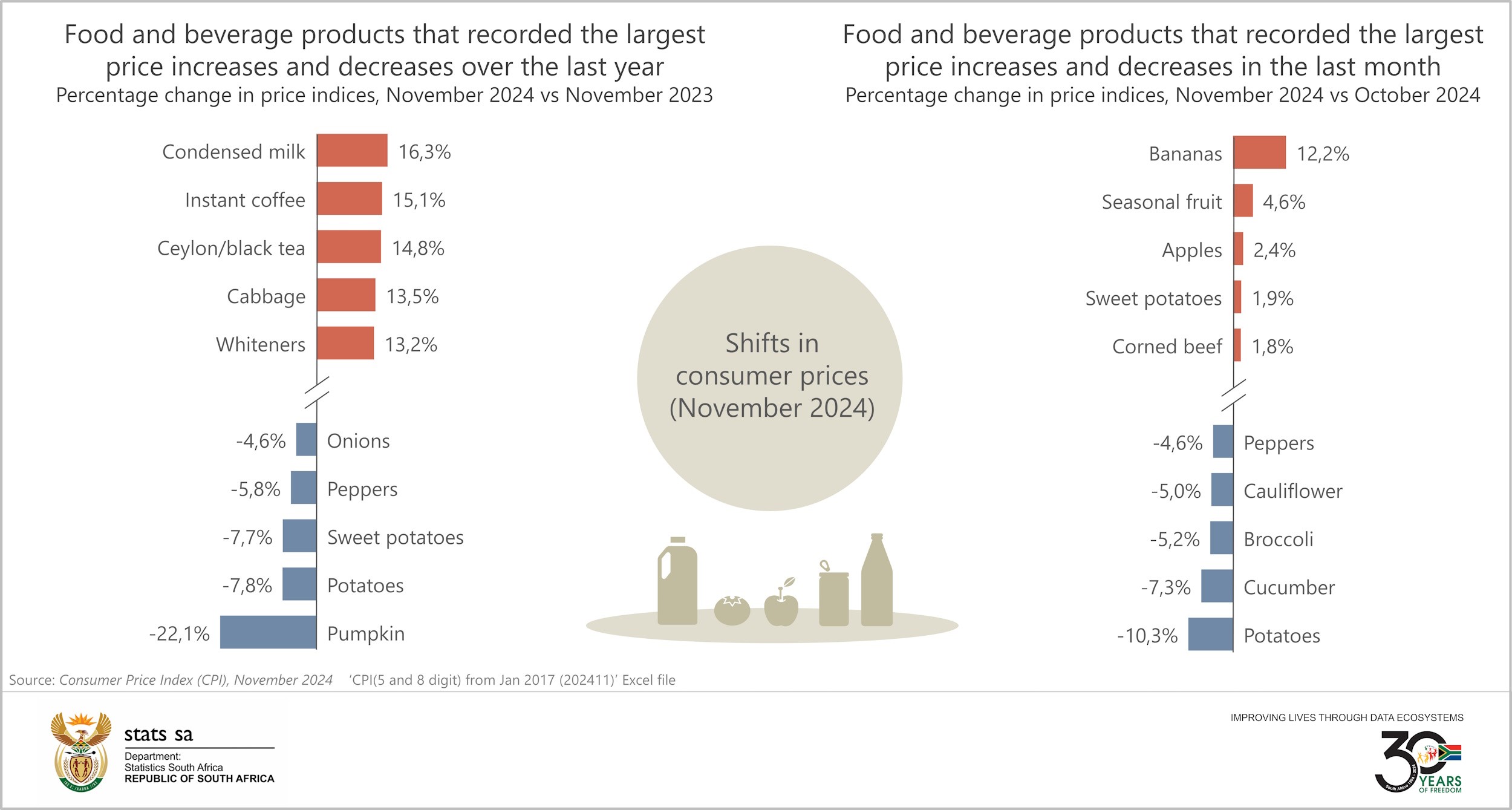 The graphs below show food and beverage products that recorded significant price changes in November.