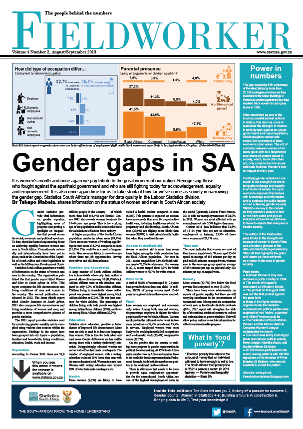 | Gender Statistics | Isabel Schmidt (Chief Director ) 012 337 6379 082 884 4281 IsabelSc@statssa.gov.za |