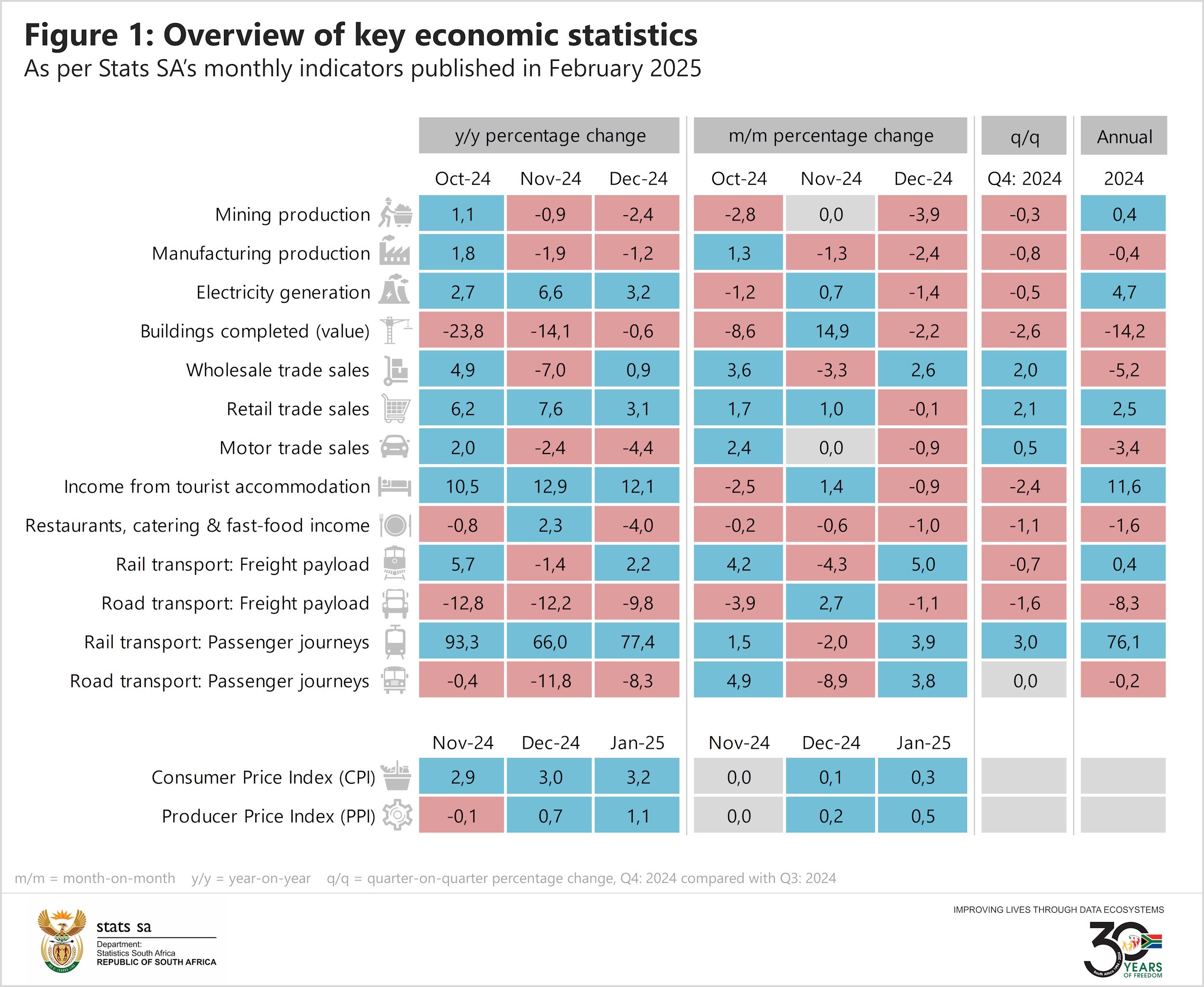 Economic data published this month provide preliminary insight into how the South African economy performed in the fourth quarter of 2024 and the calendar year