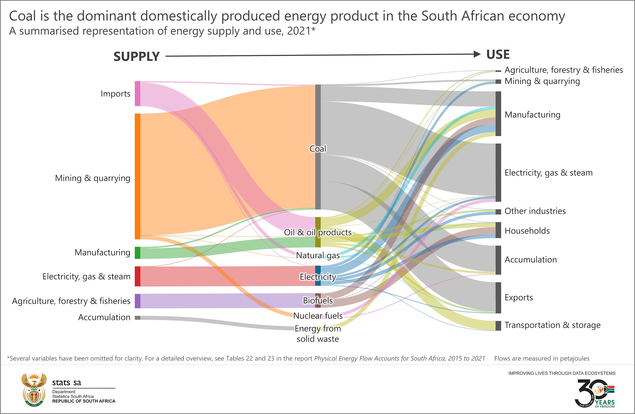 For more information, download the Physical Energy Flow Accounts for South Africa, 2015 to 2021 report here.