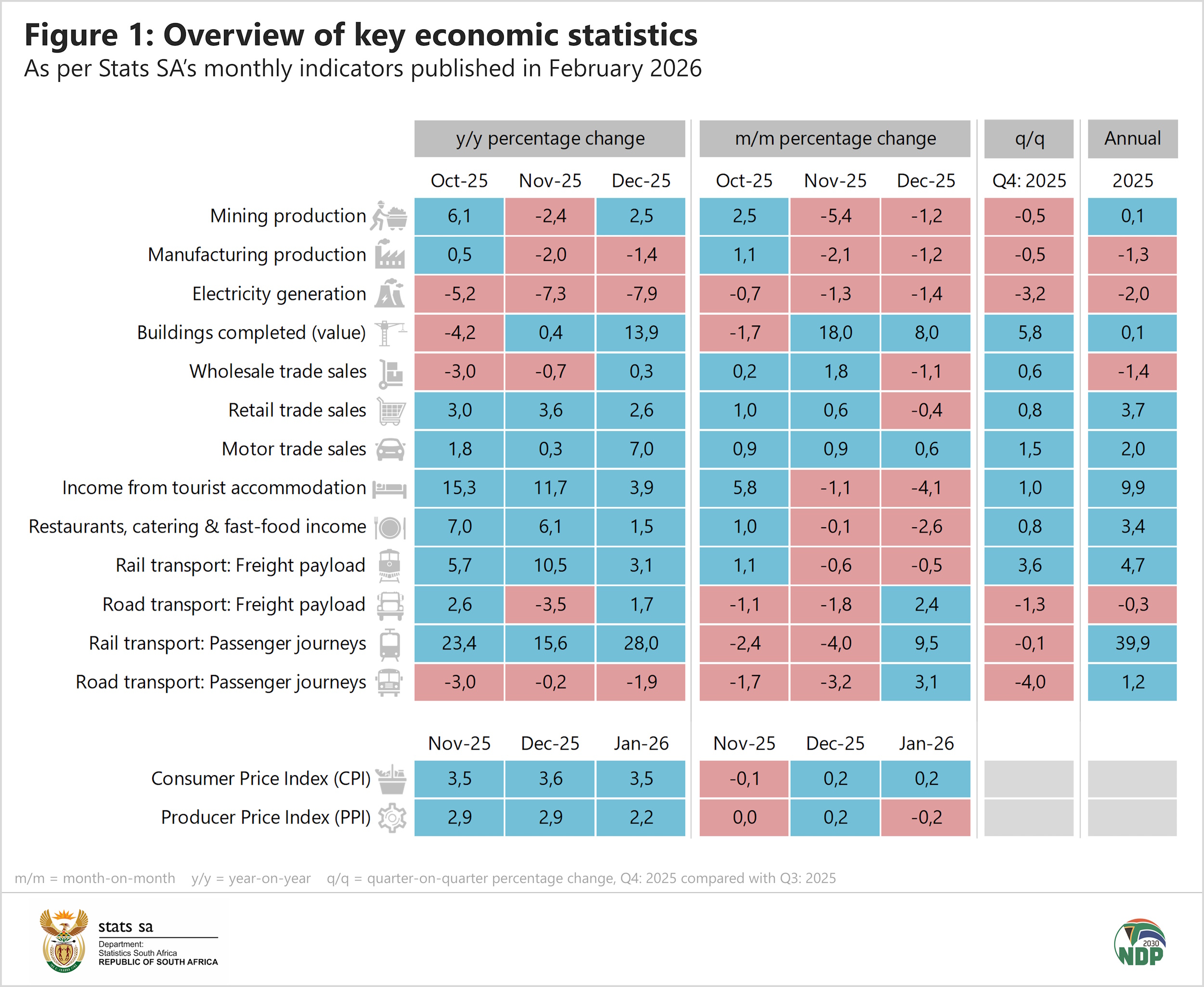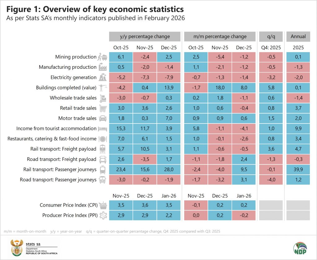 The next gross domestic product (GDP) estimates will provide a more comprehensive overview of economic performance for the fourth quarter and for 2025. The GDP estimates will be published at 11h30 on Tuesday, 10 March 2026, and will be available here.