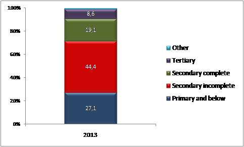 In 2001 as many as 2,3 million people were running informal businesses. The number decreased to 1,5 million in 2013. And over 95% of the owners of such businesses had only one business. Informal businesses are predominantly run by black Africans, persons aged 35–44 years, and those with the lowest levels of education.