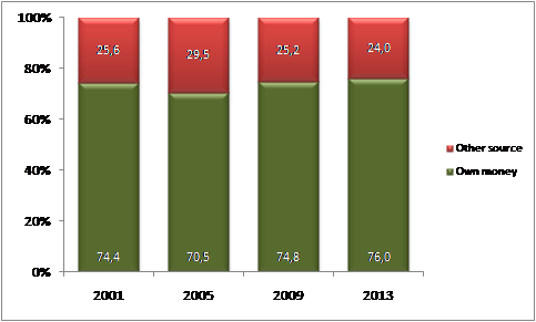 Figure 3: Source of money to start informal businesses, 2001-2013