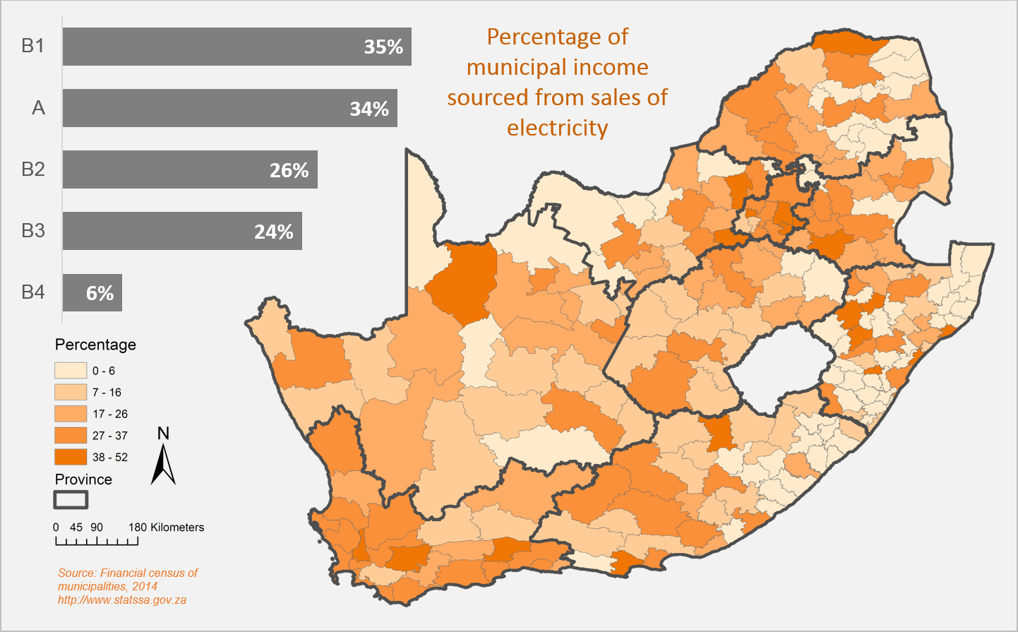 The main source of revenue for predominantly urban municipalities (A and B1), on the other hand, was from sales of electricity3.