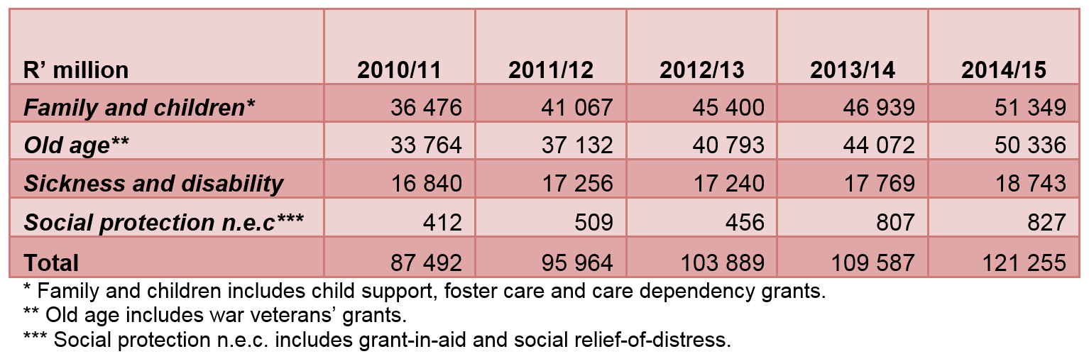Government has increased spending on social protection by 39% over a five-year period, from about R87 billion in 2010/11 to about R121 billion in 2014/15, according to data from Stats SA’s latest Financial statistics of national government report.