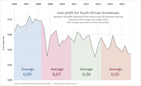 How well have South African businesses performed? This can be a complicated question that can be tackled with a range of indicators. From the wealth of financial data available from the recently published Quarterly Financial Statistics (QFS), Stats SA takes a look at one such indicator: the profit margin ratio.