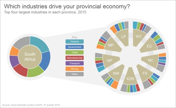 4 Interested in finding out more about your provincial economy? Provincial/regional gross domestic product (GDP) figures published by Stats SA are available in Tables 16 to 35 in the GDP_P0441_Regional_Revisions_tables_Q4_2016 Excel file available here. For national GDP figures, download the PDF release here.