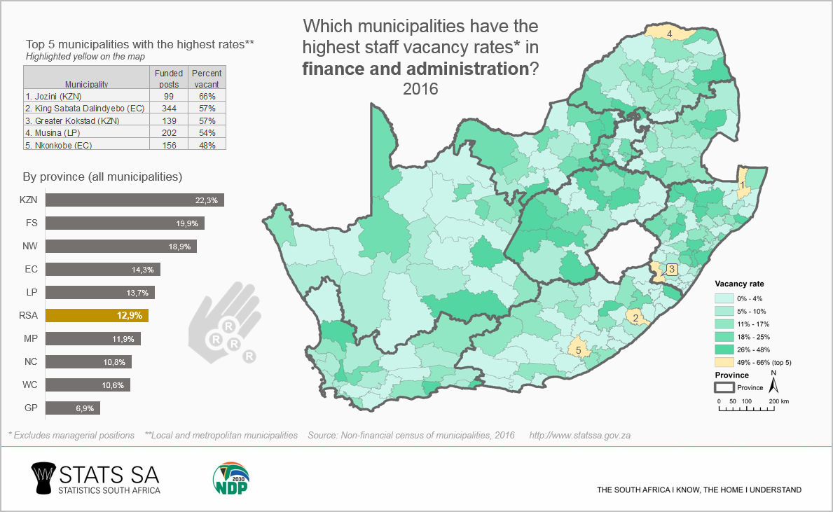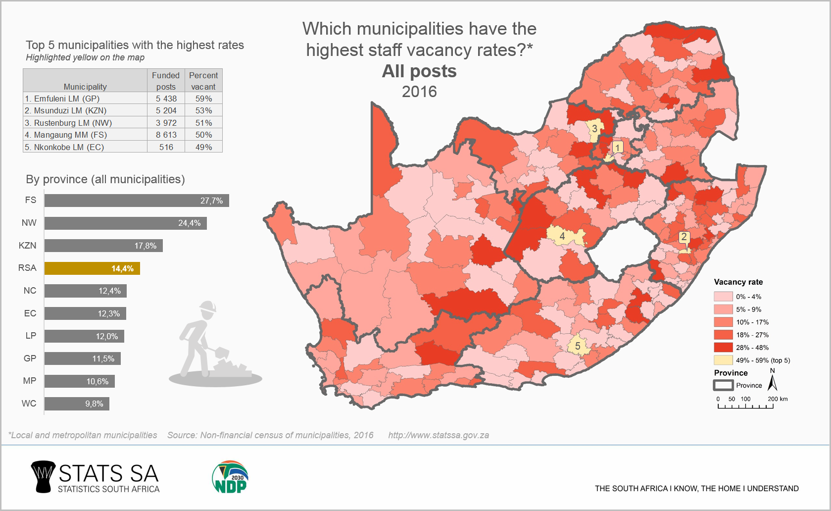 Local government is responsible for ensuring that homes, businesses and industries across South Africa have access to vital services, such as electricity, water and refuse removal. Does your municipality have the staff to ensure that you receive these services? The maps below provide a snapshot2.